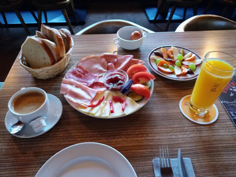 Zum Gasthaus Krone in Übersaxen führt eine tolle Bergstraße, optimal für Biker. Auch das Wetter ist wieder besser. Dort angekommen bekomme ich einen besonders günstigen Preis dafür dass ich nicht über Booking gebucht habe. Ich bin deutlich weiter gefahren wie geplant, also geht es nur kurz unter die Dusche und ins Bett. Am nächsten Morgen werde ich von einem super Frühstück am Tisch angerichtet überrascht. Für einige vielleicht ein wenig zu sehr auf Wurst und Käse ausgerichtet, aber für mich jetzt gerade der perfekte Start in den Tag.