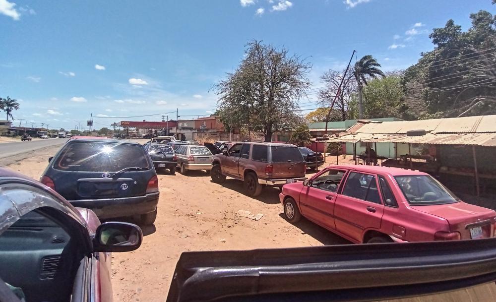 Die Fahrt von El Tigre nach Calabozo beginnt schon mit Verspätung. Das bestellte Taxi holt uns aber doch noch ab und so geht es mehr oder weniger zügig nach Valle de la Pasqua. Das Auto hat immerhin eine funktionierende Klimaanlage, die auch auf maximaler Leistung läuft, und so sitze ich bei einer Außentemperatur von knapp 40 Grad mit Jacke im Auto. Für die Weiterfahrt organisiert uns der Fahrer ein weiteres Taxi. Da müssen wir aber erstmal den Preis aushandeln, der Fahrer nimmt etwas zu selbstverständlich unser Gepäck in seinen Kofferraum. Wir werden uns aber dann einig, wir wollen nicht ewig auf einen billigeren Bus warten und nehmen den höheren Preis hin in der Hoffnung dafür schneller ans Ziel zu kommen. Allerdings geht es erstmal zum Terminal um aufs Klo zu gehen, dann versucht er noch weitere Mitfahrer zu organisieren und macht sich schließlich auf den Weg. Es dauert nicht lange, dann fährt er rechts ran um aus einer alten Cola-Flasche Benzin einzufüllen. Weit wird er damit aber nicht kommen, und so dauert es keine 10 Minuten bis er sich an einer Tankstelle anstellt. Es gibt schon eine ewig lange Schlange und es gibt auch noch kein Benzin an der Tankstelle. Immerhin gibt es eine extra Schlange für Transportunternehmen, und in dieser Schlange stehen wir wenigstens an dritter Stelle. Aber auch vorne zu stehen hilft nicht viel, wenn es kein Benzin gibt und wir müssen fast drei Stunden warten, bis die Tankstelle endlich öffnet.
