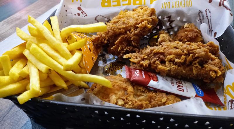 Zahlreiche Cafes und Restaurants vertreiben den Hunger der nur durch die einladenden Gerüche auf der Straße überhaupt gekommen ist. Besonders interessant sind dabei lokale Kopien von großen Fast-Food Ketten wie Starbucks und KFC. So muss einen Abend auch mal TFC - Tirana Fried Chicken ausprobiert werden. Leider stimmen die Google Rezensionen über den schlechten Service, aber das Essen ist trotzdem gut und wir haben es auch nicht eilig.