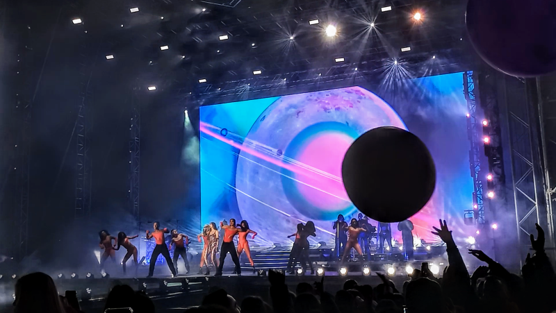 Eine albanische Sängerin eröffnet die Veranstaltung, es dauert relativ lange bis Dua Lipa selbst kommt. Die gesamte Veranstaltung wird aufmerksam von mehreren Drohnen verfolgt, eine davon fliegen weniger wie einen Meter über den Köpfen des Publikums und hat auch keine Scheu davor zwischen den Künstlern zu fliegen. Beim Auftritt von Dua Lipa versucht einer vom Sicherheitspersonal die Drohnen mit einem grünen Laserpointer zu stören, allerdings mit mäßigem Erfolg. Zum einen sind es zu viele, meinstens zwischen fünf und acht die aktiv sind, zum anderen ist es auch nicht ganz einfach die Kamera mit dem Laserpointer zu treffen.