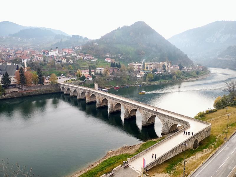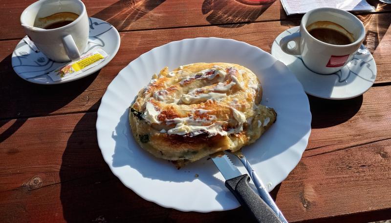 Die Fahrt nach Visegrad ist das Highlight dieser Gegend. Es geht auf vielen Serpentienen erst rauf in die Berge, dann durch schöne Landschaften Richtung Visegrad. Ein kleines Gasthaus am Wegrand wirkt einladend um einen Kaffee zu trinken, und der Wirt ist sehr freundlich und zeigt uns was er gerade im Ofen hat. Trotz Sprachbarriere bekommen wir Kaffee mit Milch und auch eins seiner frisch gebackenen Brote.