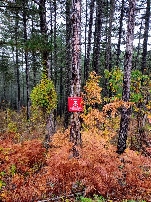 In einer weiteren Sackgasse versucht uns eine Frau mit vielen Gesten zu erklären dass es da nicht weitergeht. Das ist für uns nichts Neues, aber die Leute hier verstehen scheinbar nicht dass wir einfach nur Spazieren gehen um die Landschaft zu sehen und uns zu bewegen. Ziemlich oben am Berg angekommen Warnt uns ein rotes Schild mit Totenkopf vermutlich vor Minen die es im Balkan leider immer noch sehr häufig gibt.