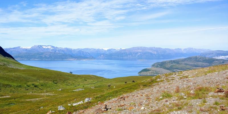 Es geht wieder Richtung Norden, entlang von Fjorden, Bergen, Seen und das Wetter ist uns sehr wohlgesonnen. Auf einem schönen Pausenplatz gesellt sich noch ein Pole namens Arthur zu uns, lässt sich immerhin auf eine Banane einladen und bietet mir einen Schlafplatz an falls ich auf dem Rückweg durch Polen kommen sollte. Auf jeden Fall tauschen wir mal Nummern, das kann immer nützlich sein.