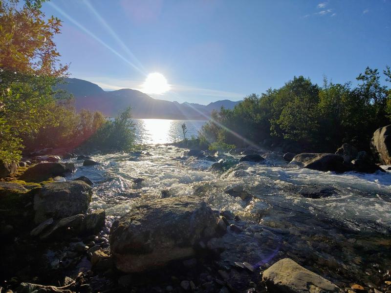 Dann suchen wir etwas früher als sonst eine Platz zum Campen, und finden direkt an einem Fjord einen tollen Platz. Der einzige Nachteil, nahe an der Straße ohne viel Lärmschutz, aber hier ist eh nicht viel Verkehr und ich habe für die Nacht Ohrstöpsel. Wir bauen die Zelte auf, es gibt einen Lagerfeuerplatz, auf der anderen Straßenseite ein Wasserfall als Dusche mit schön frischem Schmelzwasser und nur ein paar Meter von uns einen kleinen Fluss der in den Fjord mündet.