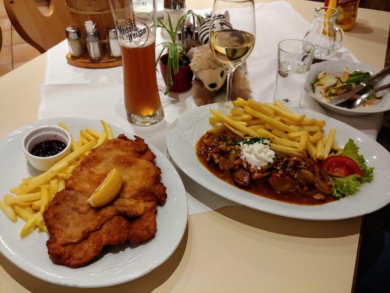 Es ist schon dunkel als wir beim Hotel ankommen. Wir checken ein und haben nur noch eins im Sinn. Wir haben Hunger! Die Küche ist fantastisch und wir gönnen uns ein würdiges Abschiedsessen von unserer Tour.