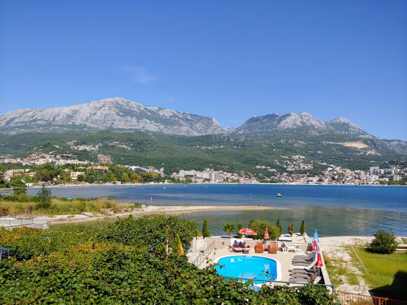 Die Abfahrt gestaltet sich allerdings äußerst frustrierend. Die Straße ist kaum breit genug für zwei Autos, dennoch fahren in beide Richtungen große Reisebusse. Die gesamte Abfahrt ist Stau, nur alle paar Minuten können wir wenige Meter rollen. Zwischenzeitlich schauen wir zu wie die Leute beim Ausweichen ihre Autos anecken und kaputt machen. Irgendwann kommen wir unten an und fahren durch Kotor. Wir haben uns ein Hotel in Herceg-Novi am anderen Ende der Bucht gebucht. Weniger Touristen und günstiger ist es auch. Das einchecken ist unproblematisch, auf dem Zimmer steht selbstgemachter Wein und Kiwi-Schnapps. Nicht super günstig, aber wir sind neugierig und lassen uns solch eine lokale Spezialität nicht entgehen. Gegessen wird hier unter Kiwis, was dem ganzen ein schönes Flair verleiht.