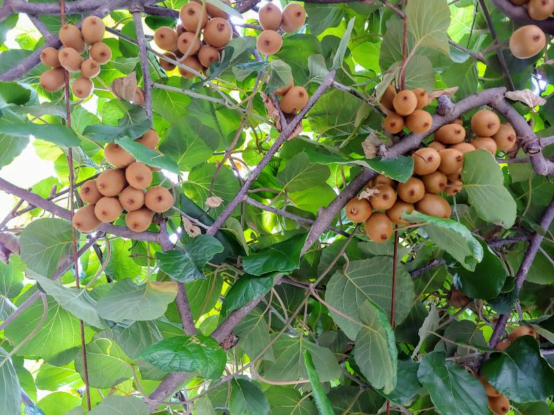 Im Garten werden Kiwis angebaut