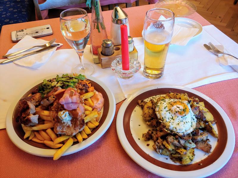 In der Unterkunft angekommen, lassen wir uns von einer warmen Badewanne wieder vollständig aufwärmen bevor wir ein äußerst leckeres Abendessen zu uns nehmen. Trotz Regen und Schnee - wobei der Schnee schon einen besonderen Charm hatte - ein gelungener Start in Sommerurlaub.