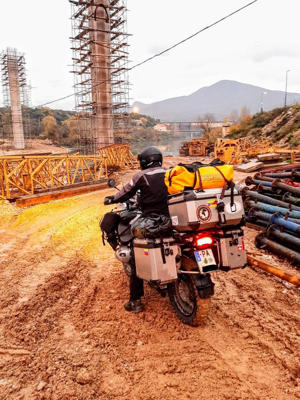 Der nächste Tag startet etwas enttäuschend mit einem Frühstück das nicht wirklich den Erwartungen in so einem Hotel entspricht. Und das ist bereits die zweite Enttäuschung an dem Tag. Die erste kam schon um 5:30 Uhr als der Muezzin auf der anderen Straßenseite lautstark zum Gebet ruft und das Hotel offensichtlich entgegen der Behauptung auf Booking nicht besonders gut schallisoliert ist. Nachdem Frühstück wird nochmal schnell der Pool ausgenutzt, dann geht es schon wieder weiter. Es geht durch Montenegro nach Bosnien wo ich kurz vor dem Ziel wegen einer Baustelle noch eine ordentliche Offroad-Einlage bekomme.
