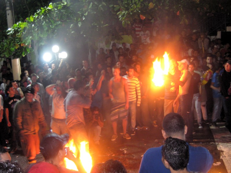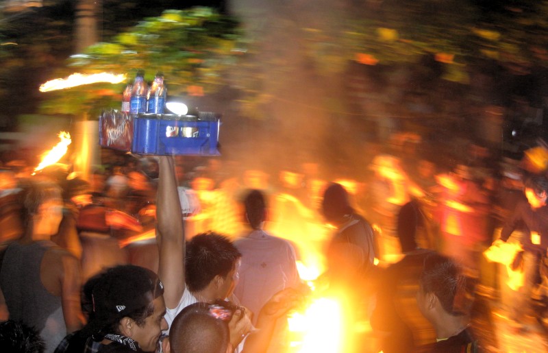 Natürlich will bei so einem Fest auch immer etwas verdient werden, so laufen einige geschäftstüchtige Jugendliche durch die brennenden Straßen und verkaufen von Wasser über Cola, Bier alles bis hin zu Pommes, Chips und Süßigkeiten.