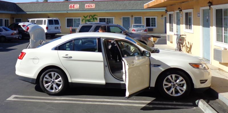 Unser Weg von L.A. nach San Francisco führt uns am ersten Tag von Downtown L.A. mit unserem neuen Auto auf den legendären Pacific Coast Highway No. 1. Obwohl unsere Autokategorie im Katalog mit einem wunderschönen Dodge Charger beworben wurde, hatte die Autovermietung nur ein einziges Exemplar, das zum einen nicht verfügbar war, und zum anderen das alte Modell war. Zur Auswahl hatten wir dann noch den guten alten Ford Crown Victoria, das standard Polizeiauto und Taxi in den USA, oder einen Ford Taurus. Letzterer war deutlich schöner und besser ausgestattet, also gings damit weiter. Doch nicht so schnell, denn die Autovermietung hat sich auch beim Verleih selbst nicht sonderlich mit Ruhm bekleckert: Zum Abholen von unserem Auto sind nur 2 von uns gefahren, mit Führerscheinen und Pässen von allen vieren, da wir ja alle als Fahrer eingetragen werden mussten. Die Mitarbeiter weigerten sich allerdings die anderen beiden einzutragen, da man angeblich persönlich etwas unterschreiben muss. Also erst noch einmal zu der Autovermietung damit alle Fahrer eingetragen werden können. Unterschreiben mussten wir nichts mehr, auch auf Nachfrage gab es für zusätzliche Fahrer nichts zu unterschreiben. Diese Autovermietung werden wir das nächste mal wohl eher meiden...