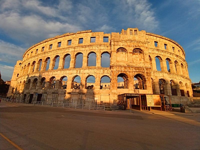 In Pula angekommen wirkt das Haus erstmal extrem heruntergekommen. Die Fassaden sind dreckig, das Viertel wirkt als würden wir jeden Moment überfallen werden. Das Appartment ist im Gegensatz dazu aber wunderschön, toll eingerichtet, sehr geräumig und hat alles was man sich wünschen kann. Dann gibt es in der Pizzeria "Asterix" ums Eck erstmal ein leckeres Essen, bevor wir die Stadt erkunden.